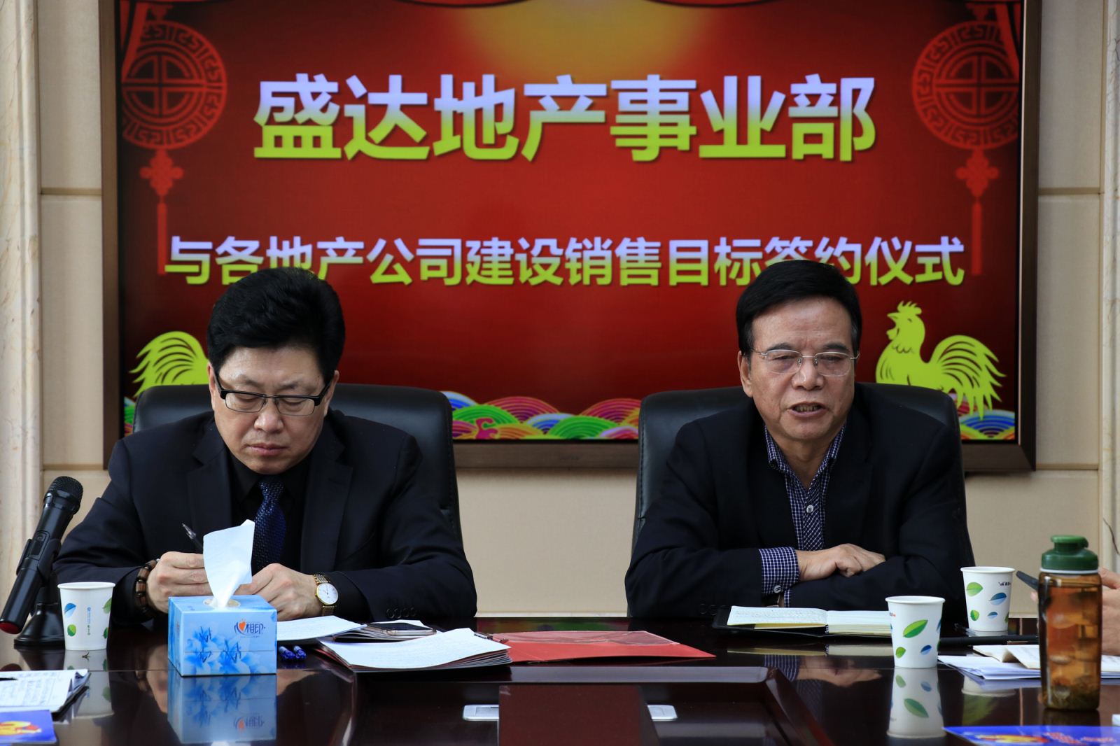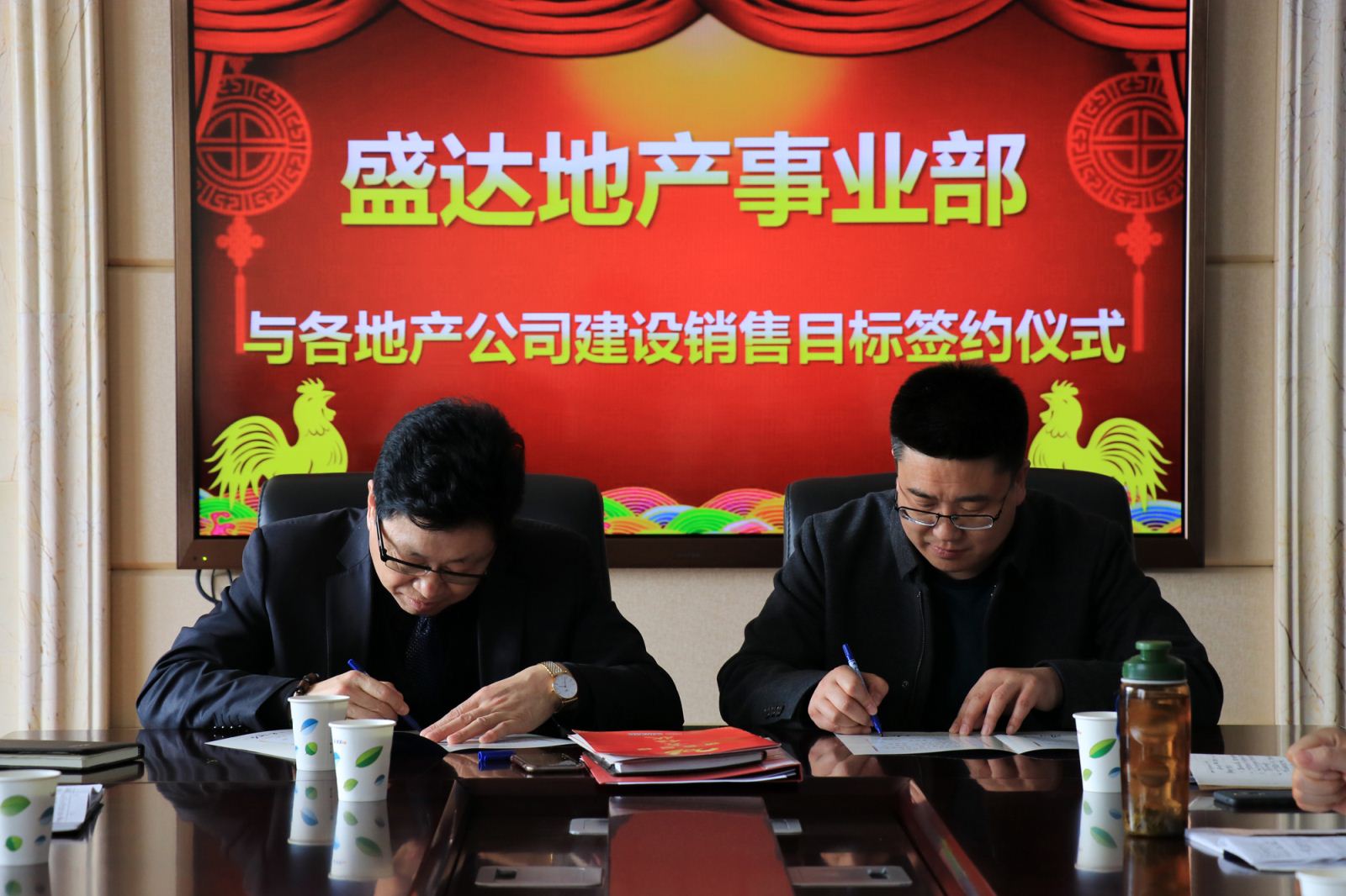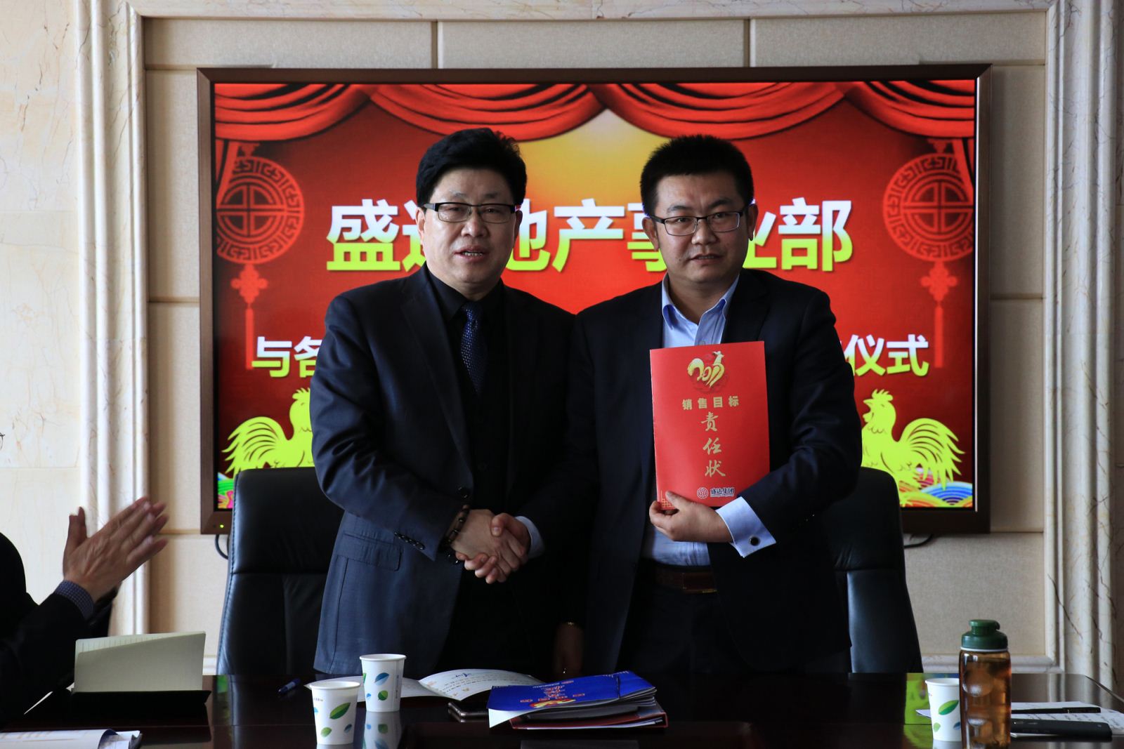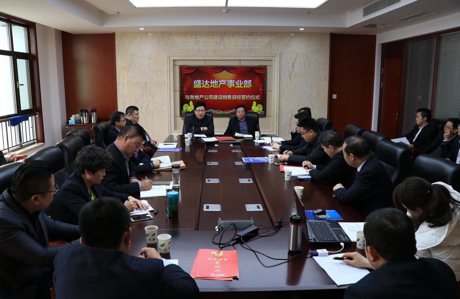 盛達(dá)集團(tuán)副總裁、地產(chǎn)事業(yè)部總經(jīng)理劉大利主持目標(biāo)責(zé)任狀簽訂會(huì)。出席簽訂會(huì)的地產(chǎn)事業(yè)部領(lǐng)導(dǎo)有崔照新、張志權(quán)、梁貴倉(cāng)。 盛達(dá)集團(tuán)監(jiān)事會(huì)副主席馬海順也出席簽訂會(huì)。