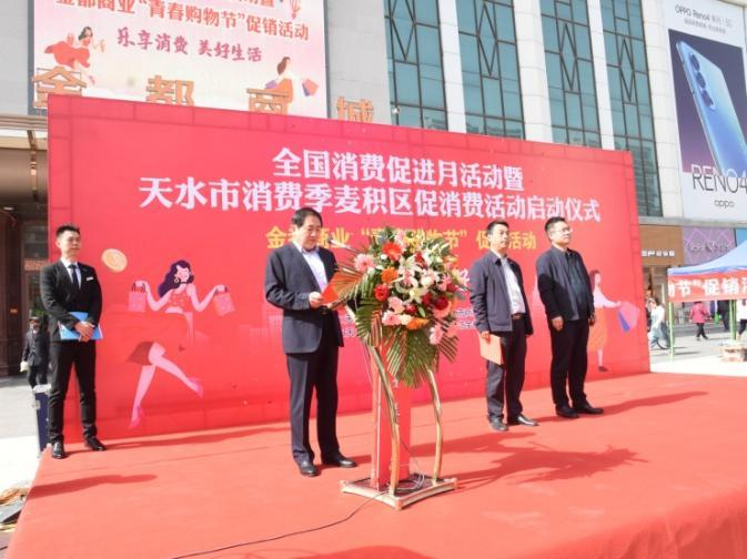 5 月 1 日,金都商業(yè)舉辦全國消費月暨金都商業(yè)“青春 購物節(jié)”促銷活動啟動儀式。 天水市商務(wù)局二級調(diào)研員李曉東、天水市商務(wù)局消費促 進科科長郭曉霞、麥積區(qū)商務(wù)局局長謝崇太等部門領(lǐng)導(dǎo)參加。 啟動儀式上,金都商業(yè)總經(jīng)理趙阿農(nóng)做了精彩致辭,區(qū)商務(wù) 局局長謝崇太對此次活動內(nèi)容進行了宣講,由李曉東調(diào)研員 宣布促銷活動正式啟動。