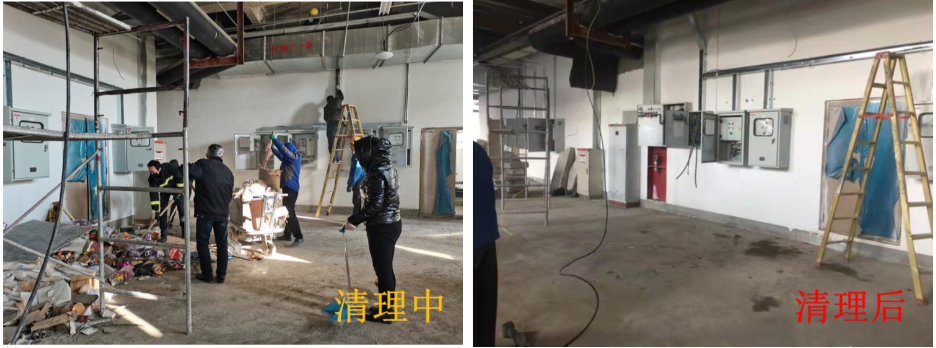 從清晨到黃昏,突擊隊員歷時三天,發(fā)揚(yáng)不服輸、不怕苦,團(tuán)結(jié)進(jìn)取、友愛互助的工作精神,經(jīng)過三天的努力,大家看著干凈的地面, 整齊的施工物品,在相視一笑中,成就感溢滿心頭。